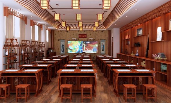 ? 營造整體傳統(tǒng)文化環(huán)境氛圍,整體設(shè)計以教學為本,配合空間設(shè)計手法,實現(xiàn)中國傳統(tǒng)文化教室學科特色,藝術(shù)特色!
