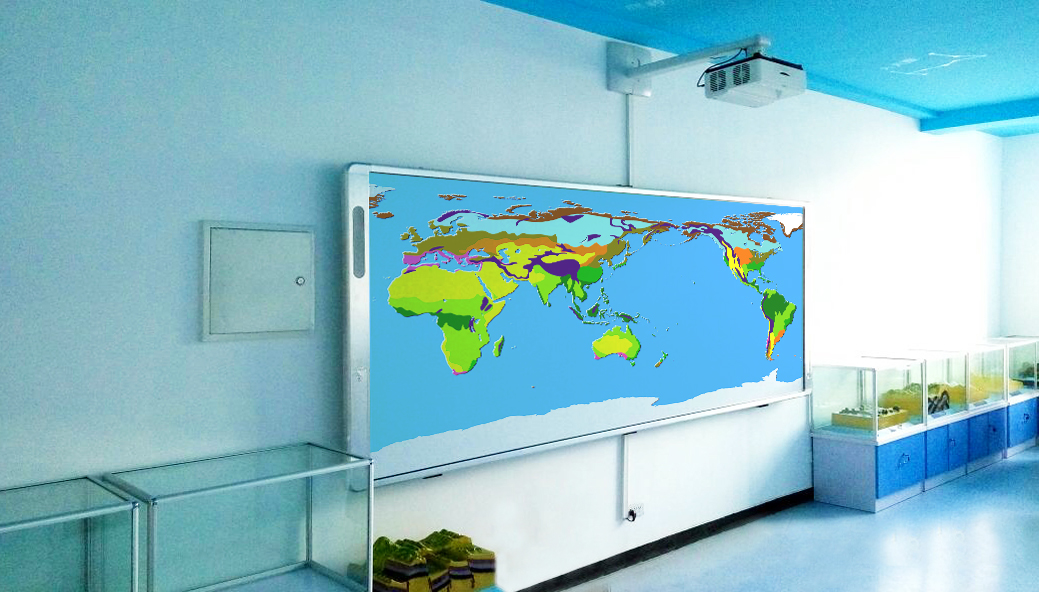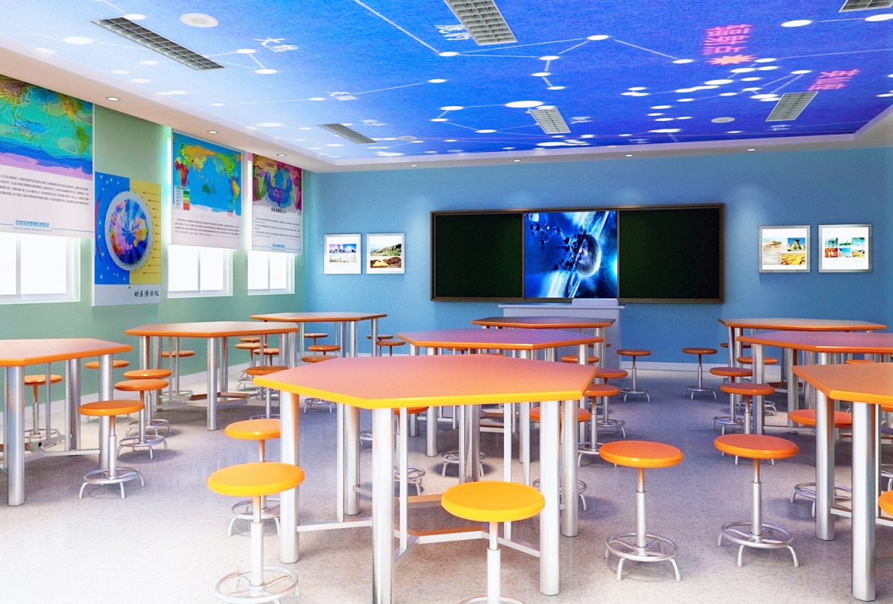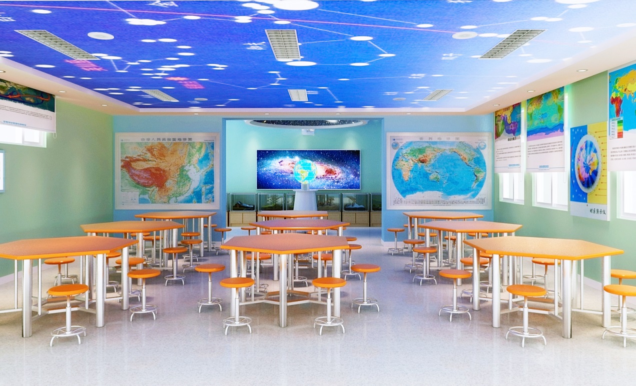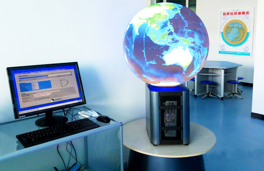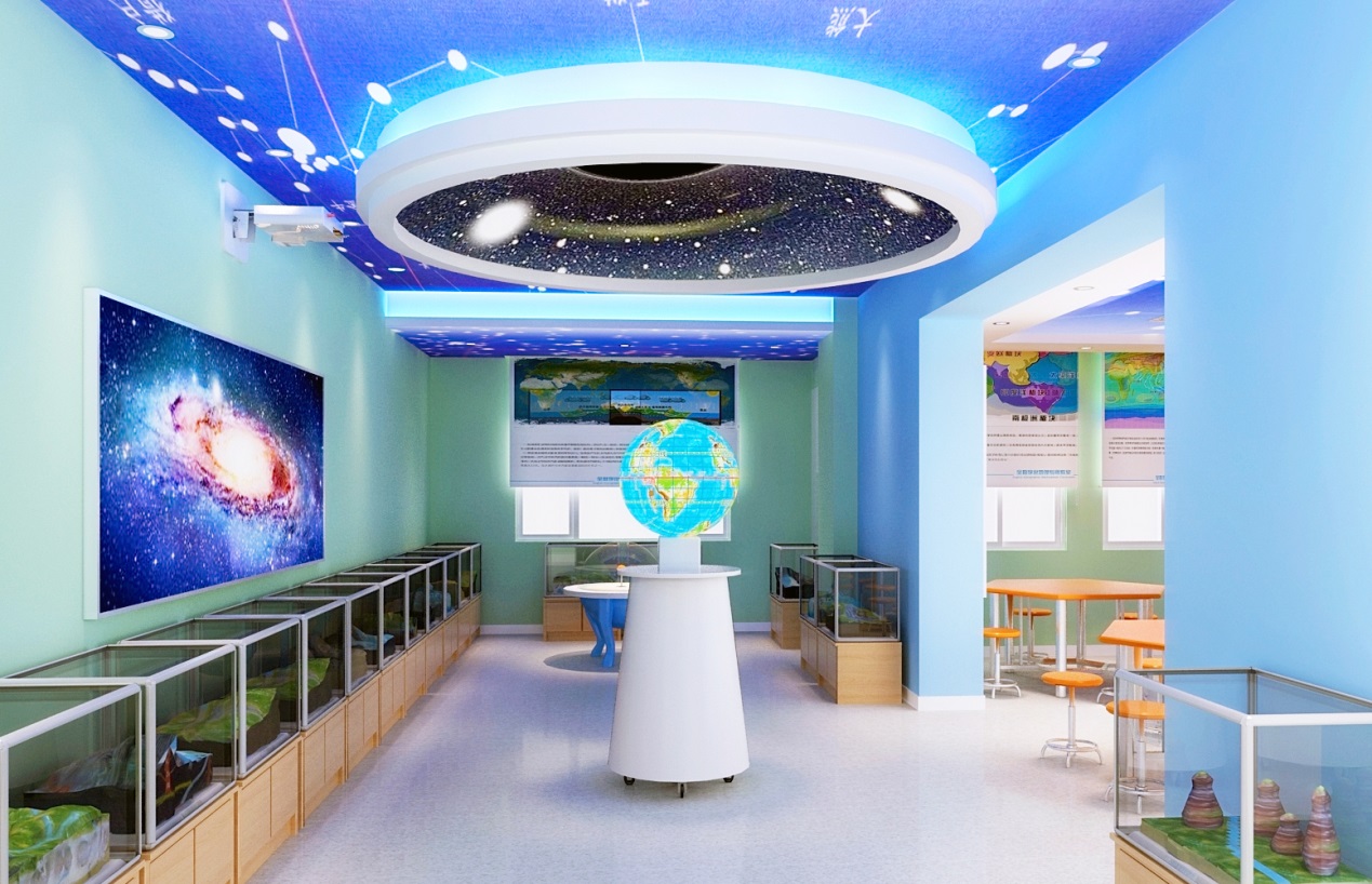 數(shù)字星球系統(tǒng)是當前地理教室建設的核心設備,它能從平面到立體、一球變多 球、靜 止到動態(tài)、展示過去 、現(xiàn)在 、將來地理變化信息,為學生提供身臨其境的教學情境,營造濃郁的學科氛圍。