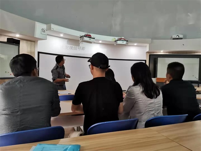 位于教室一側的環(huán)幕示教系統(tǒng),幾乎占滿整個墻面的巨大弧形屏幕,輕而易舉就能抓住學生們的注意。作為輔助教學設備,環(huán)幕示教系統(tǒng)在教學實踐中,常被用作整堂課的“引導者”,在上課伊始,播放課程相關影像視頻,以震撼的視覺效果,帶領學生盡快地進入課程。