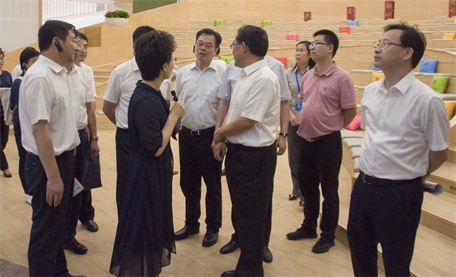 ▲羿飛教育總經(jīng)理劉聰伴隨考察團(tuán)一起參觀宜興新時(shí)代文明實(shí)踐中心