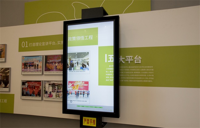 隨著滑軌屏的移動(dòng),文化墻上的宣傳內(nèi)容會(huì)相應(yīng)地出現(xiàn)在屏幕上,讓宣傳展示更有趣新穎。