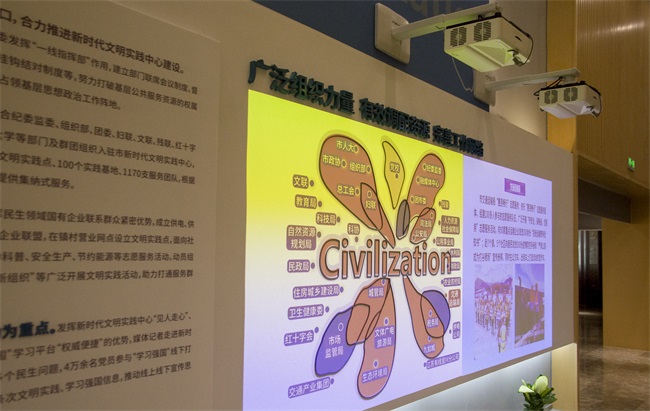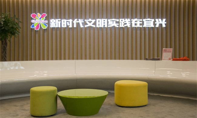 宜興市新時(shí)代文明實(shí)踐中心依托宜興市文化中心進(jìn)行建設(shè),在宜興被列入全國(guó)首批新時(shí)代文明實(shí)踐中心建設(shè)試點(diǎn)后,為更好地發(fā)揮新時(shí)代文明實(shí)踐中心統(tǒng)籌指揮功能,宜興市委市政府調(diào)配3700平方米的場(chǎng)地,成立了新時(shí)代文明實(shí)踐服務(wù)指導(dǎo)中心。中心功能完備,理論學(xué)習(xí)、展示展覽、互動(dòng)體驗(yàn)、洽談交流、志愿培訓(xùn)一應(yīng)俱全,為廣大群眾參與新時(shí)代文明實(shí)踐活動(dòng)提供廣闊平臺(tái)。
