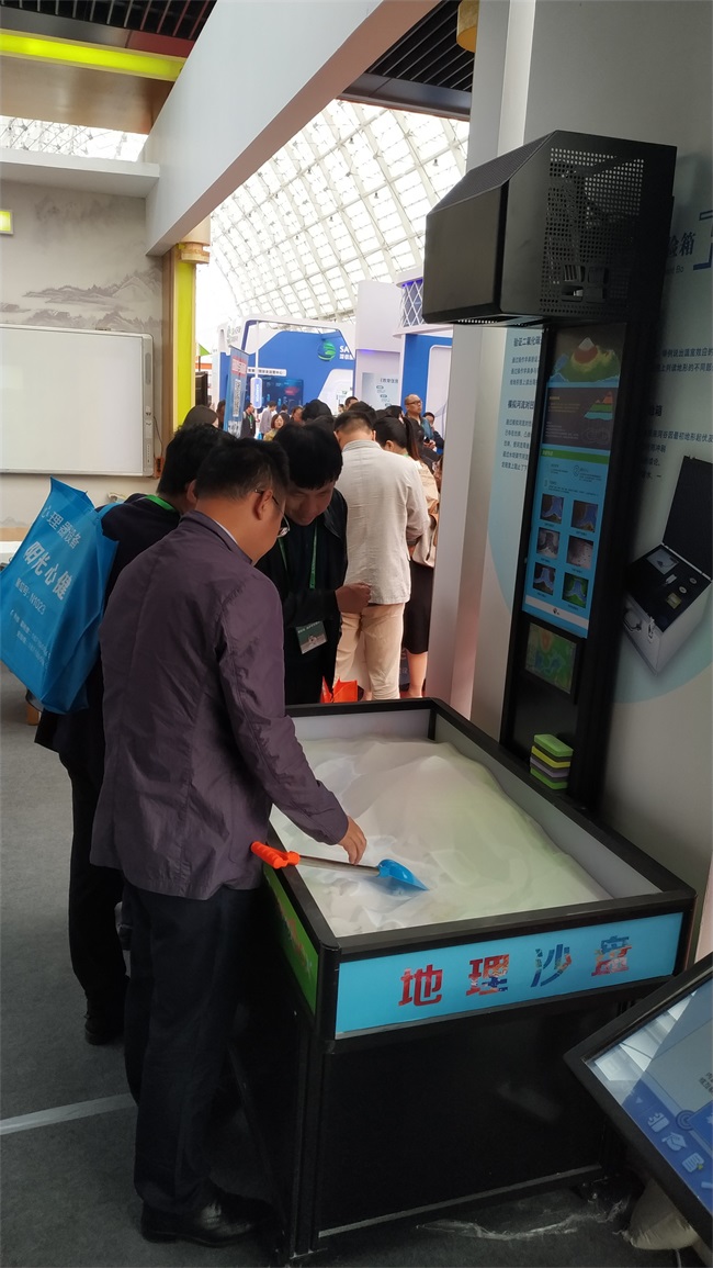 羿飛數(shù)字化地理專用教室集現(xiàn)代地理教育技術(shù)最新成果之大成,現(xiàn)場展出了多媒體超半球互動(dòng)球幕投影演示儀、數(shù)字立體地形、天文演示儀、地理微課堂、數(shù)字模型、交互式3D多媒體教學(xué)系統(tǒng)等教學(xué)設(shè)備,囊括地理教學(xué)的方方面面。