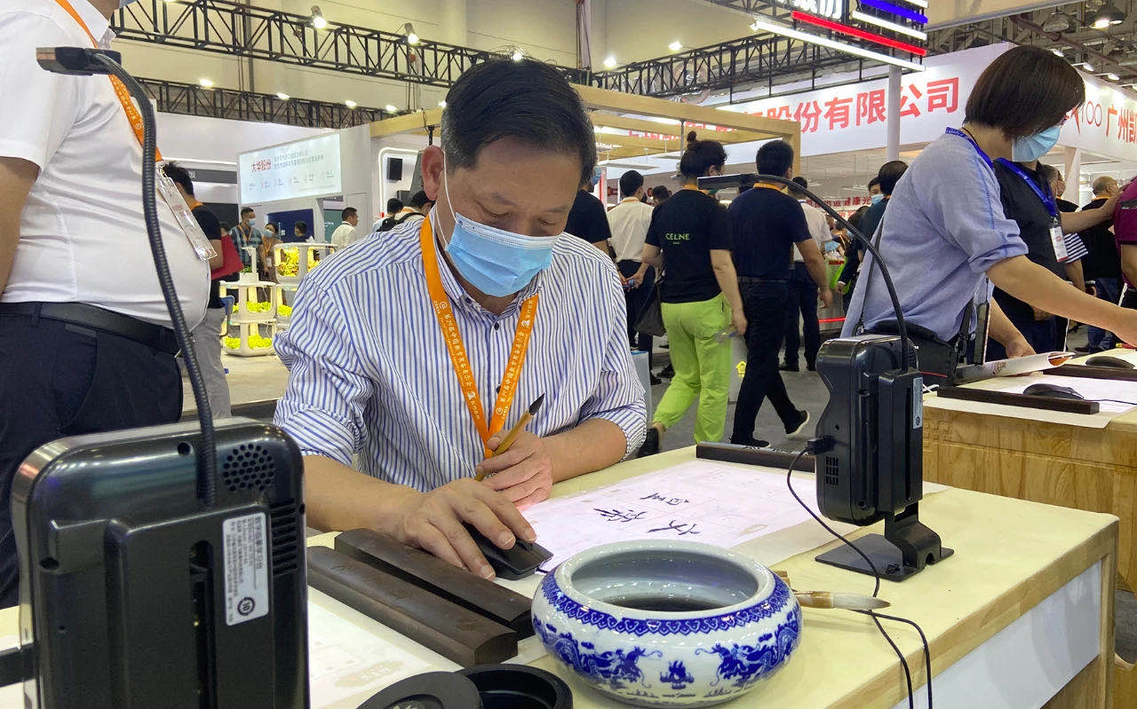在展會(huì)現(xiàn)場,參觀者可領(lǐng)取一份空白扇面,繼而在翰墨派云書法教學(xué)系統(tǒng)的指導(dǎo)下完成獨(dú)一無二的書法作品。羿飛教育(C1-009)以開放的心態(tài)歡迎各方賓朋前來參觀、交流!